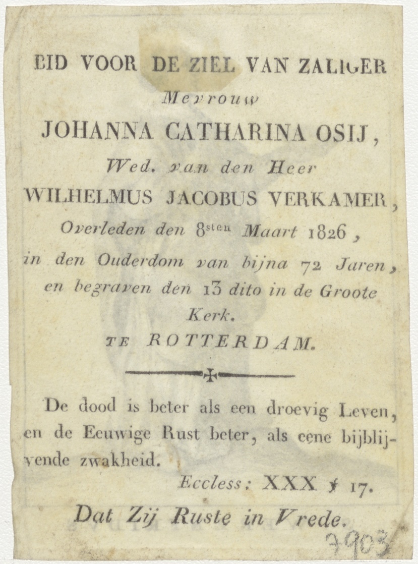 H. Werenfridus, H. Marcellinus, kz. Bid voor ziel Johanna Catharina Osij (+1826) Rotterdam, weduwe van Wilhelmus Jacobus Verkamer