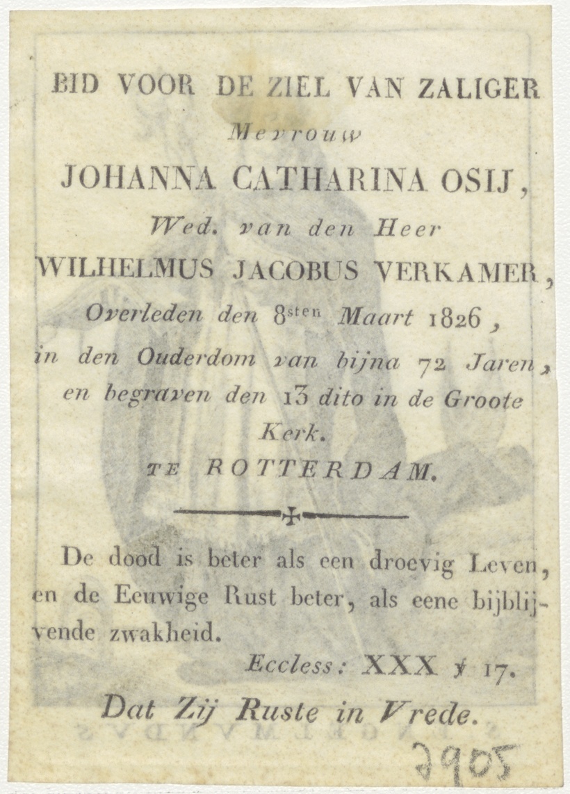 H. Engelmundus, H. Marcellinus, kz. Bid voor ziel Johanna Catharina Osij (+1826) Rotterdam, weduwe van Wilhelmus Jacobus Verkamer