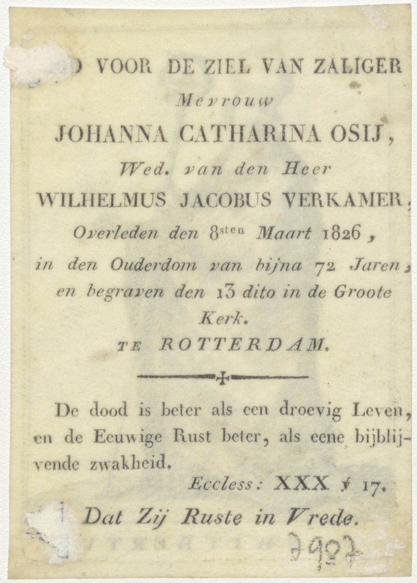 H. Suitbertus, H. Marcellinus, kz. Bid voor ziel Johanna Catharina Osij (+1826) Rotterdam, weduwe van Wilhelmus Jacobus Verkamer