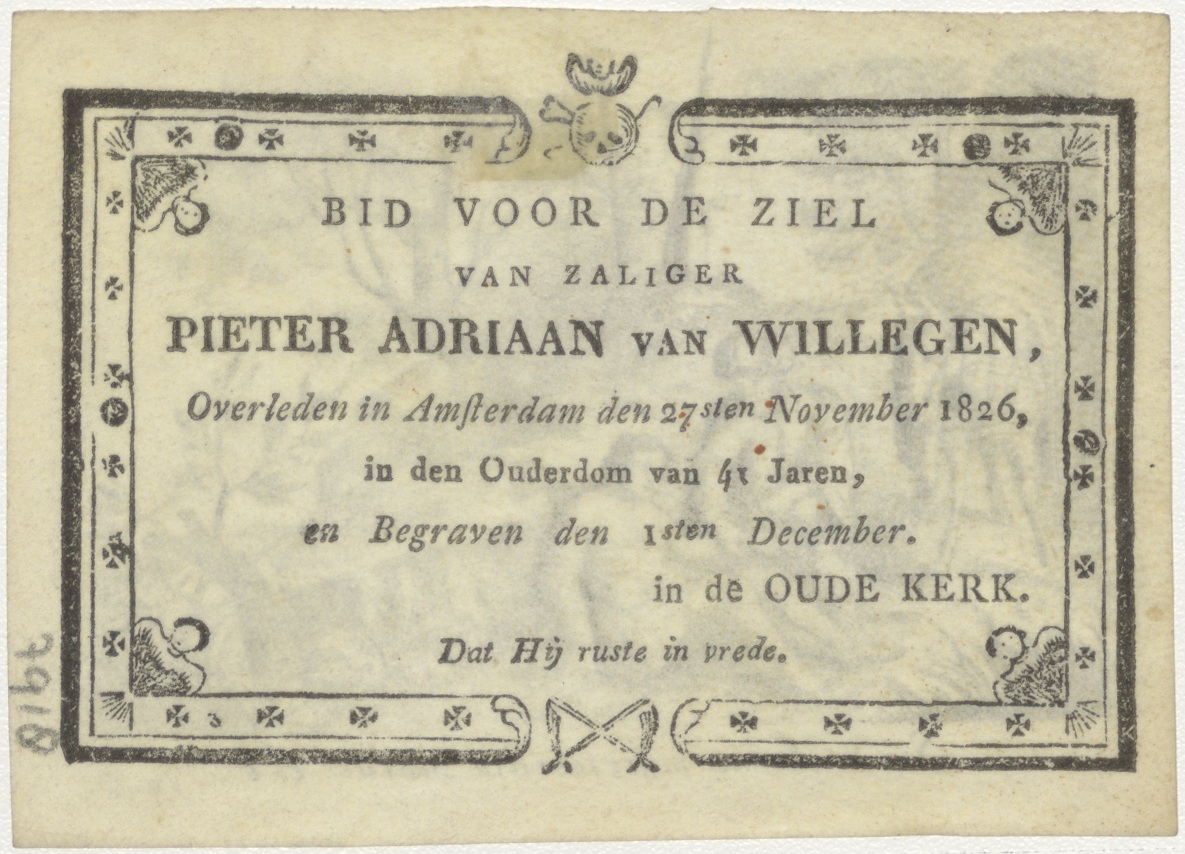 Barmhartige Samaritaan, kz. Bid voor ziel van Willegen (+1826) Amsterdam