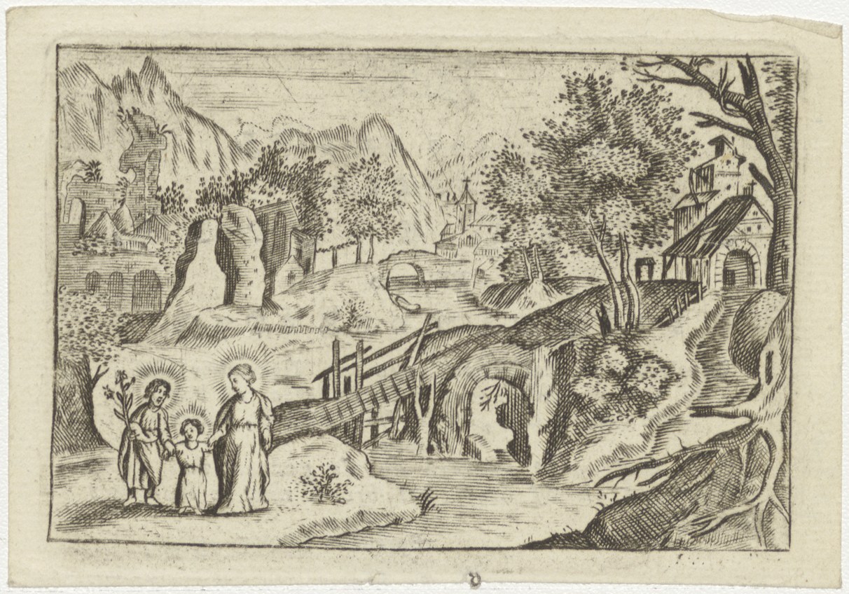 H. Familie in landschap, kz. Bid voor ziel Kuiper-Van der Stam (+1826) Enkhuizen