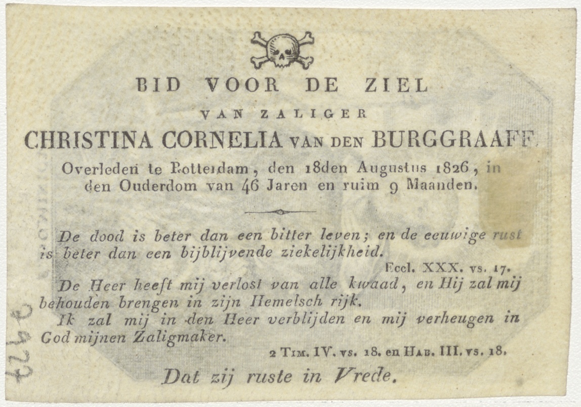 H. Dominicus, kz. Bid voor ziel Van den Burggraaff (+1826) Rotterdam