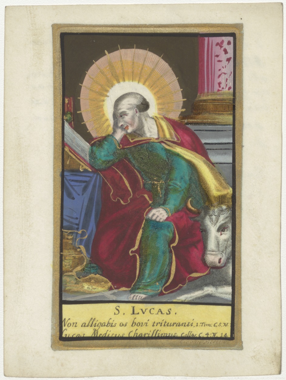 H. Lucas de evangelist, ingekleurd, kz. Amsterdam;1838;beloning van Mw. Jongheid voor Van der Hoeven;