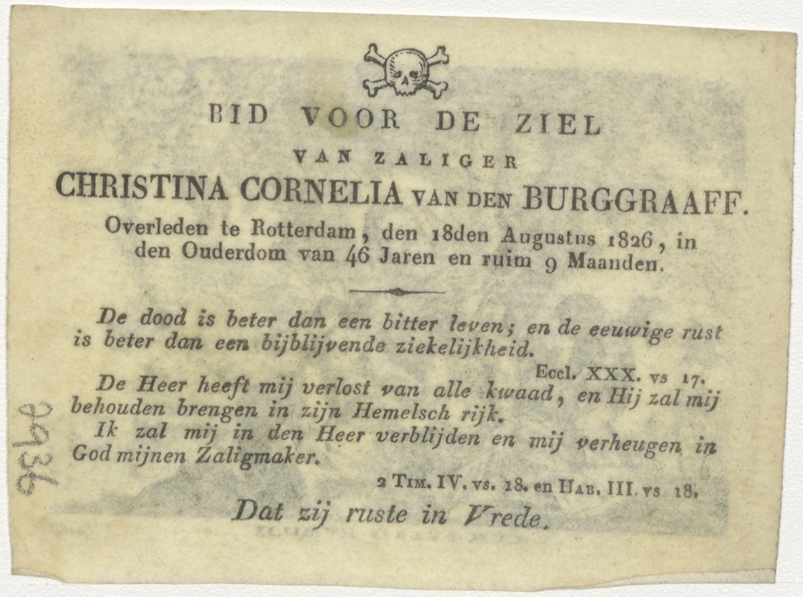 Maria met Christuskind en Johannes, kz. Bid voor ziel Van den Burggraaff (+1826) Rotterdam