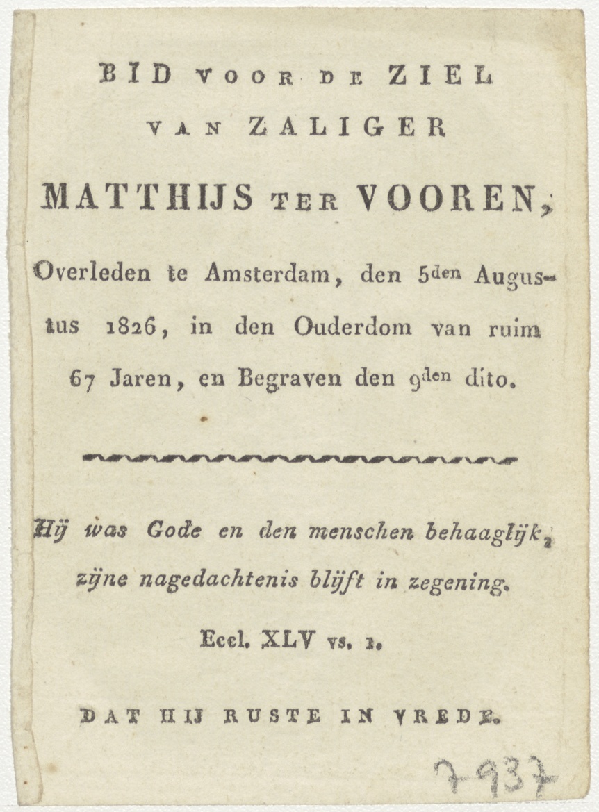 H. Familie, kz. Bid voor ziel Ter Vooren (+1826) Amsterdam