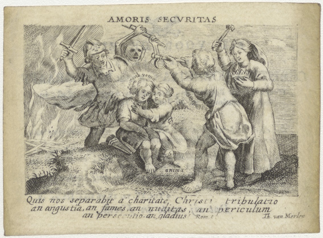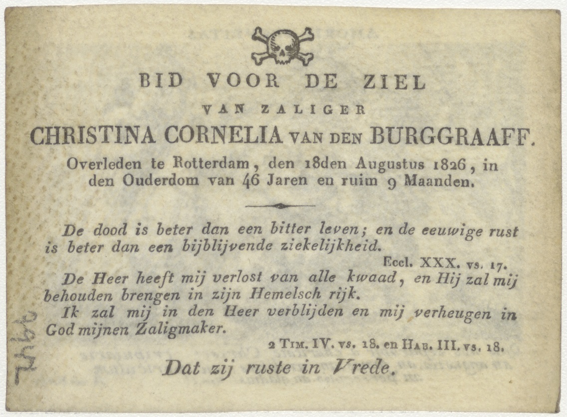 Amor divinus en Anima, gemarteld en gekruisigd, kz. Bid voor ziel van den Burggraaff (+1826) Rotterdam