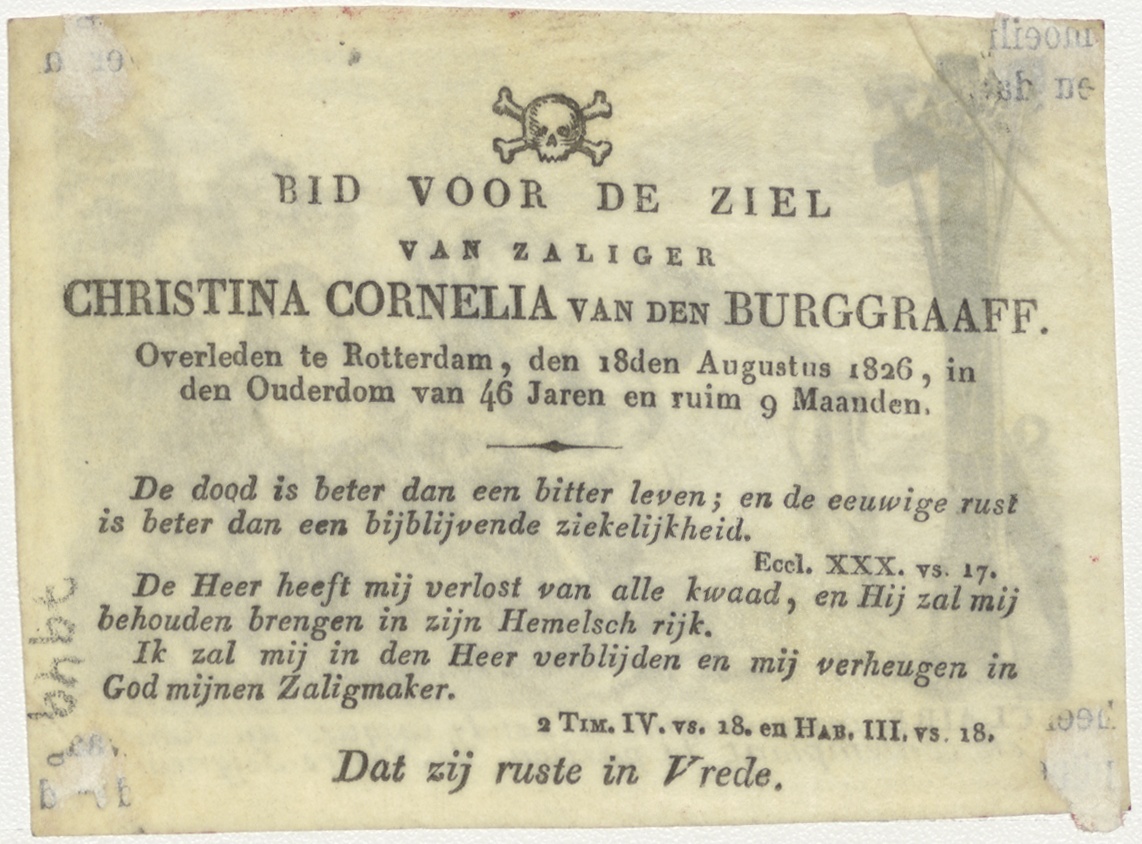 H. Clara (Frans), kz. Bid voor ziel van den Burggraaff (+1826) Rotterdam