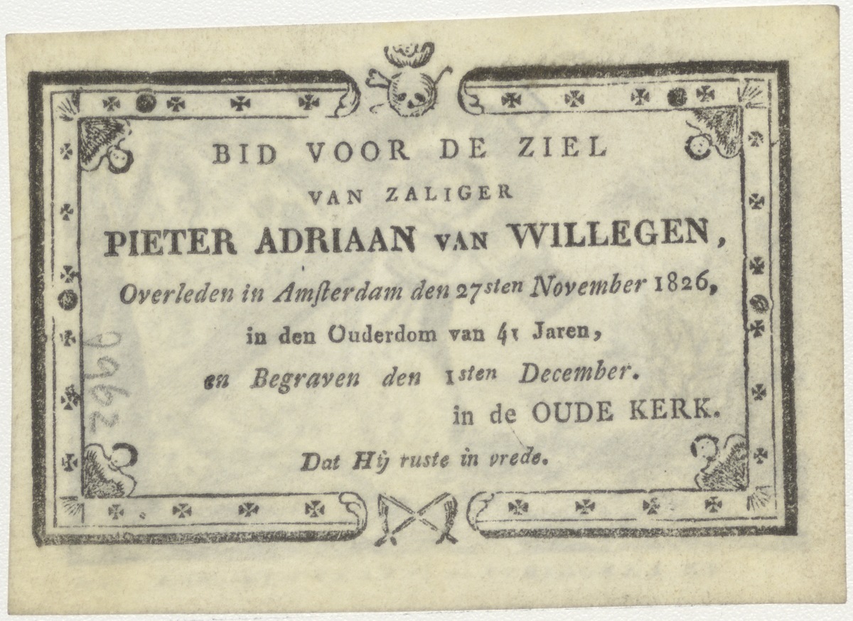 Christuskind met kind, kz. Bid voor ziel Pieter Adriaan van Willigen (+1826) Amsterdam