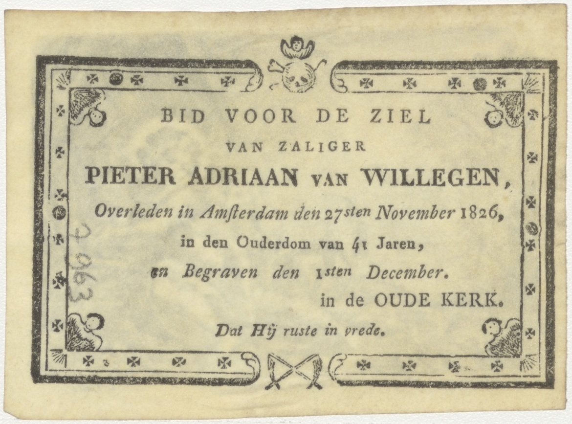 H. Johannes de Doper, kz. Bid voor ziel Pieter Adriaan van Willigen (+1826) Amsterdam