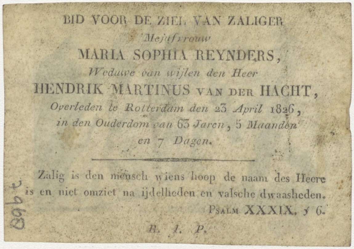 Jesus draagt zijn kruis, kz. Bid voor ziel Reynders-van der Hacht (+1826) Rotterdam