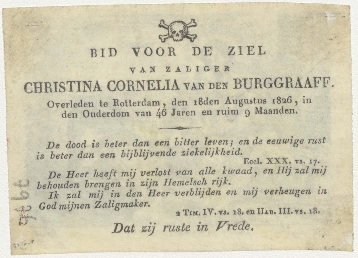 Maria met Christuskind, huiselijke scène, kz. Bid voor ziel Van den Burggraaff (+1826) Rotterdam