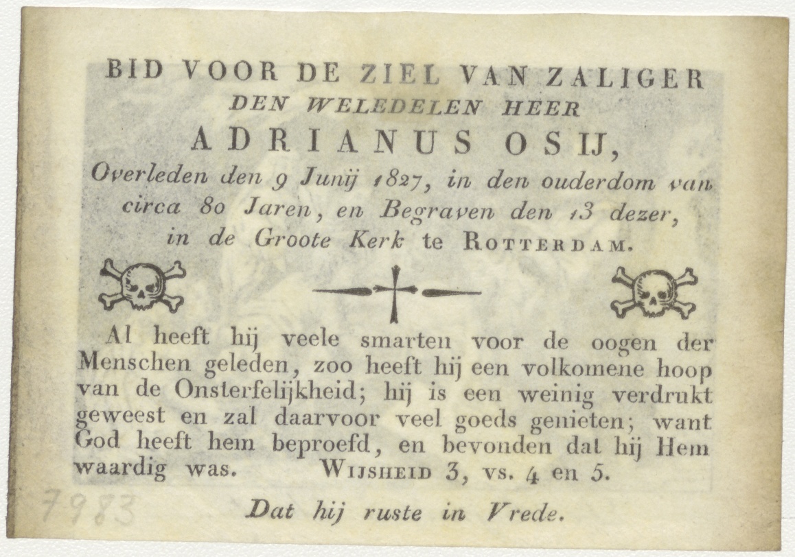 Graflegging van Christus, kz. Bid voor ziel Adrianus Osij (+1827) Rotterdam