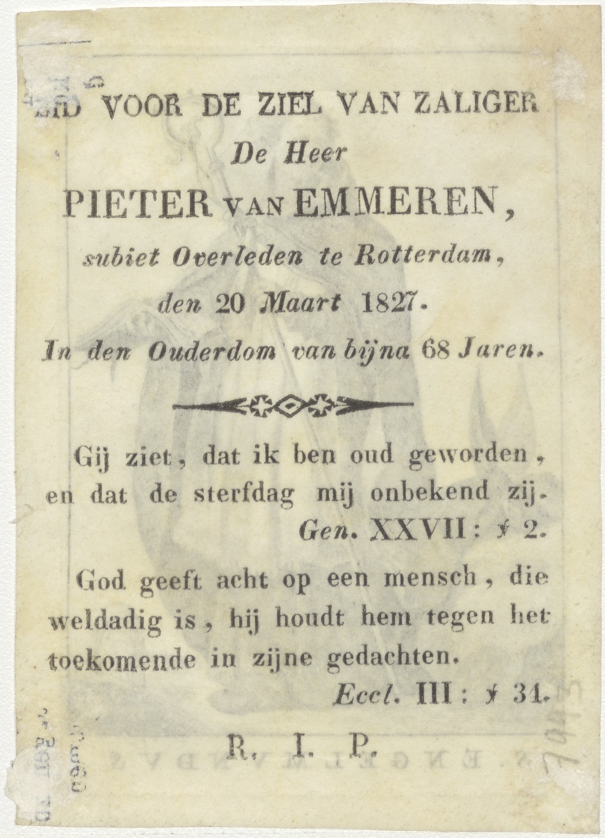 H. Engelmundus, kz. Bid voor ziel Van Emmeren (+1827) Rotterdam