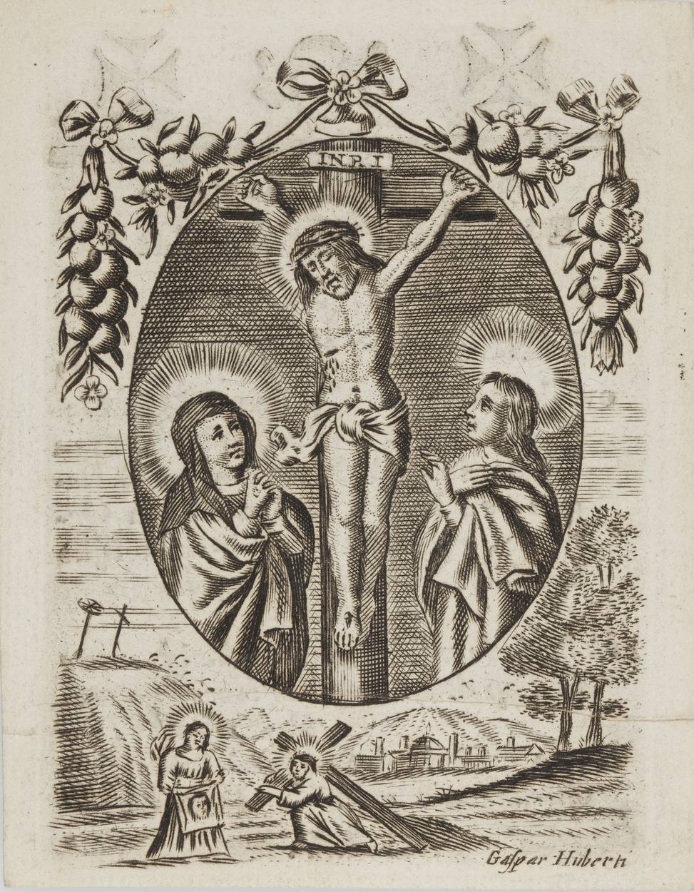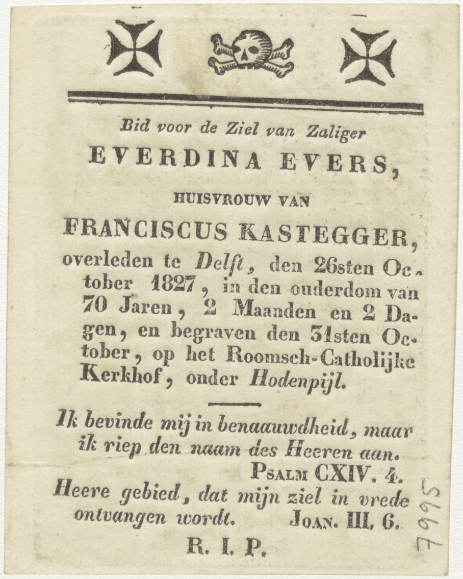 Gekruisigde Christus, kz. Bid voor ziel Kastegger-Evers (+1827) Delft