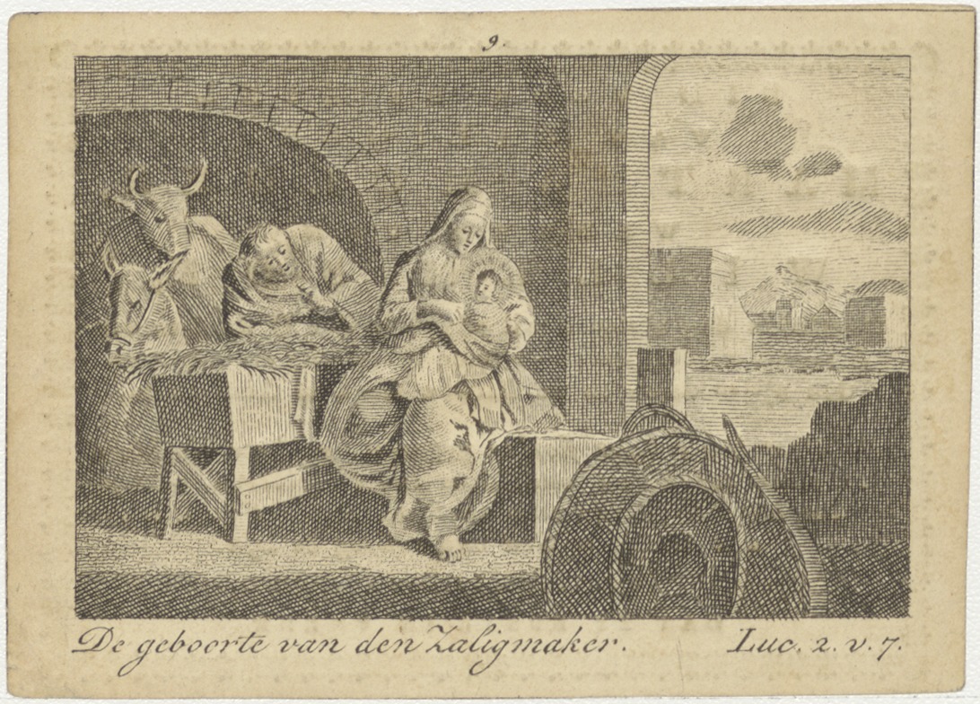Geboorte van Christus (Luc.2:7), kz. Bid voor ziel Martha Mulder (+1827) Amsterdam, weduwe van Willem Bon
