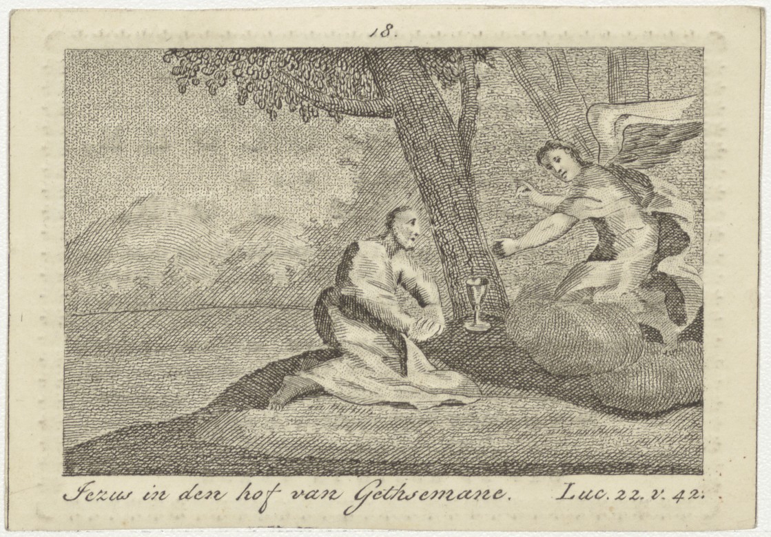 Christus ontvangt het laatste sacrament in de hof van Getsemané (Luc. 22:42), kz. Bid voor ziel Martha Mulder (+1827) Amsterdam, weduwe van Willem Bon