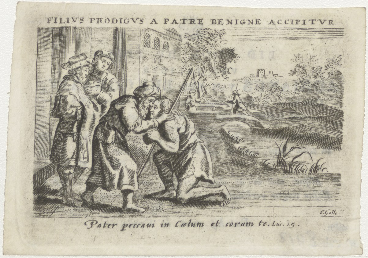 Terugkeer van de verloren zoon (Luc.15), kz. Bid voor ziel Van den Burggraaff (+1827) Rotterdam