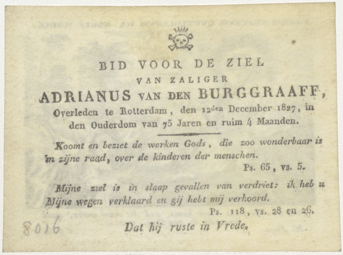 Wonder van Christus: de wonderbaarlijke broodvermenigvuldiging, kz. Bid voor ziel Van den Burggraaff (+1827) Rotterdam