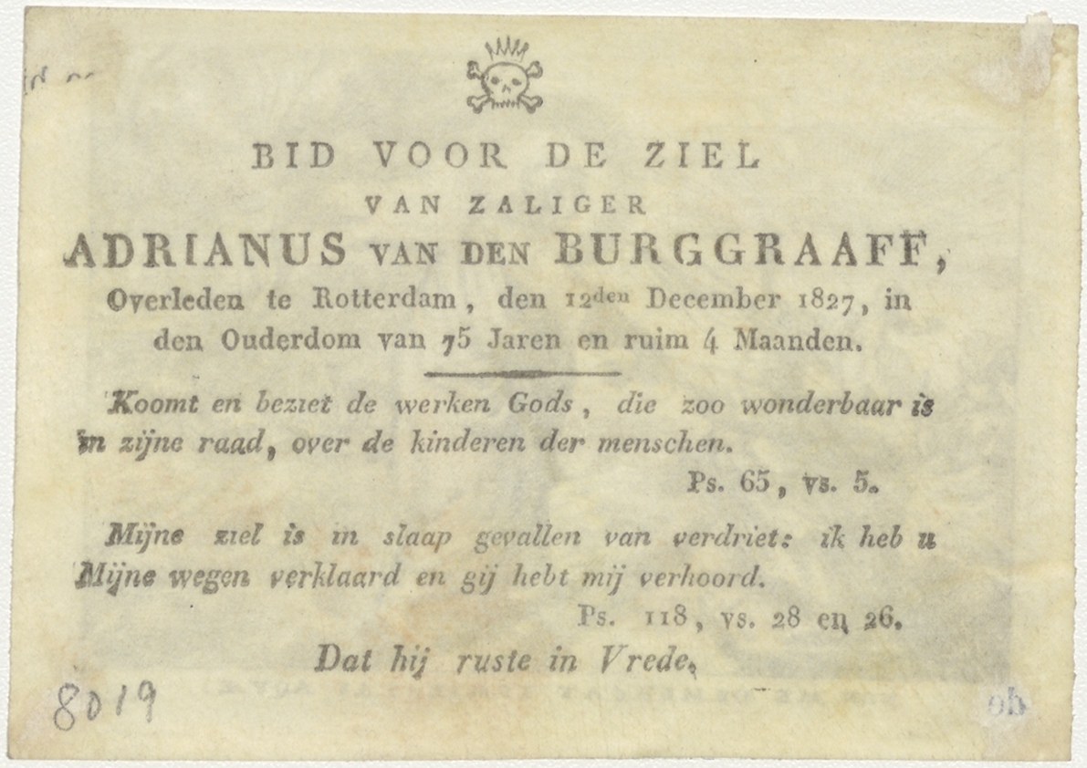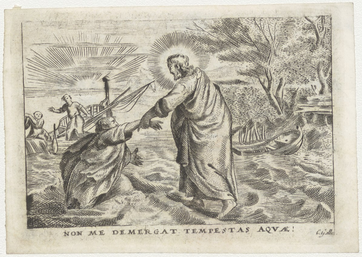 Petrus wordt door Christus uit het meer van Galilea gered, kz. Bid voor ziel Van den Burggraaff (+1827) Rotterdam
