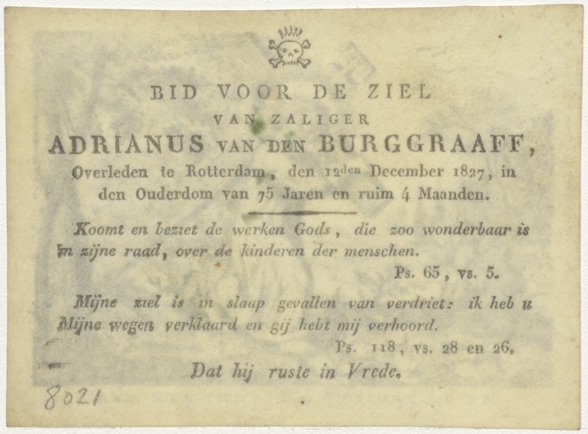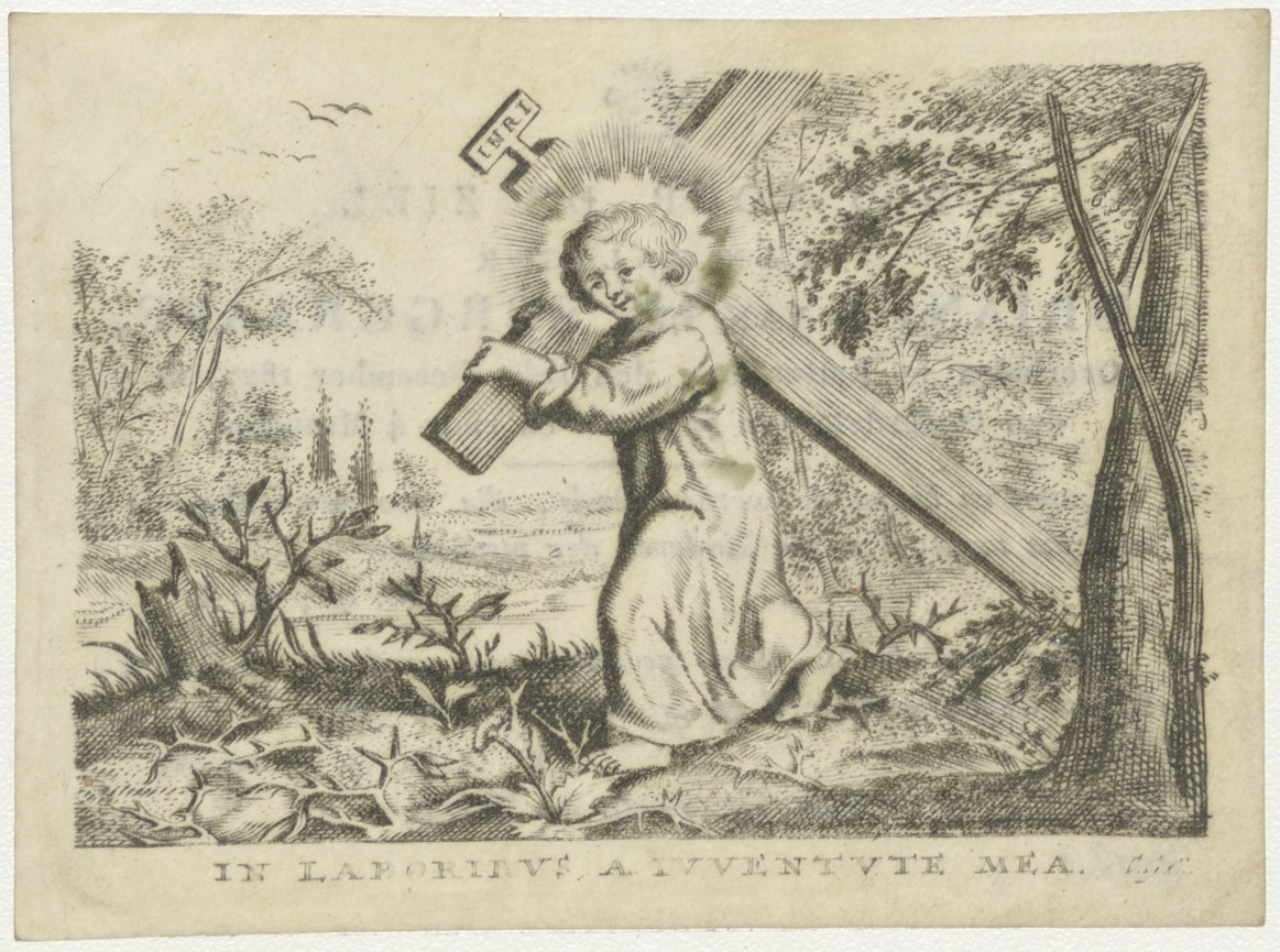 Christuskind met kruis, kz. Bid voor ziel Van den Burggraaff (+1827) Rotterdam