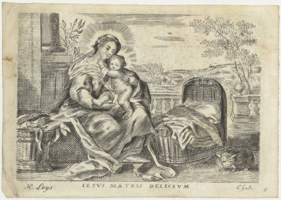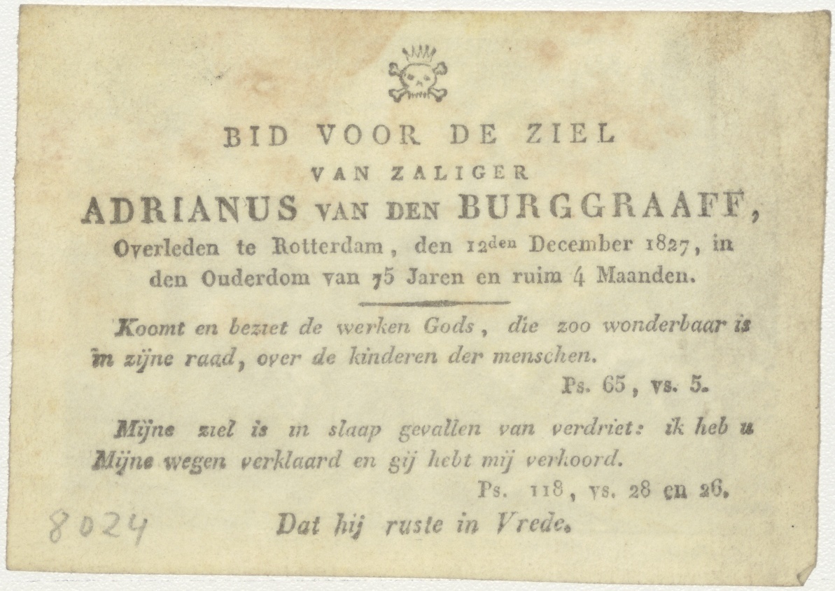 Maria met Christuskind, huiselijke scène, kz. Bid voor ziel Van den Burggraaff (+1827) Rotterdam