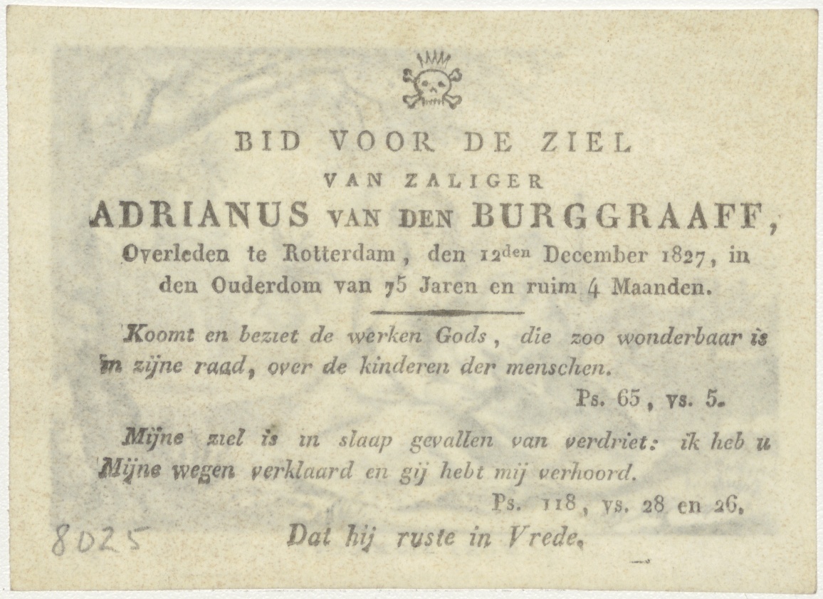 Maria met Christuskind en Johannes, kz. Bid voor ziel Van den Burggraaff (+1827) Rotterdam
