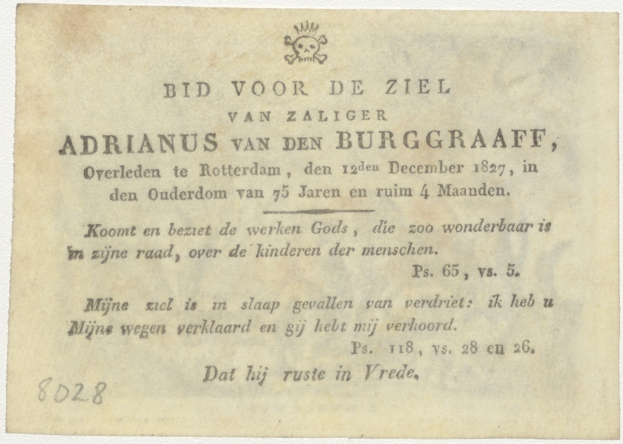 H. Hubertus, kz. Bid voor ziel Van den Burggraaff (+1827) Rotterdam