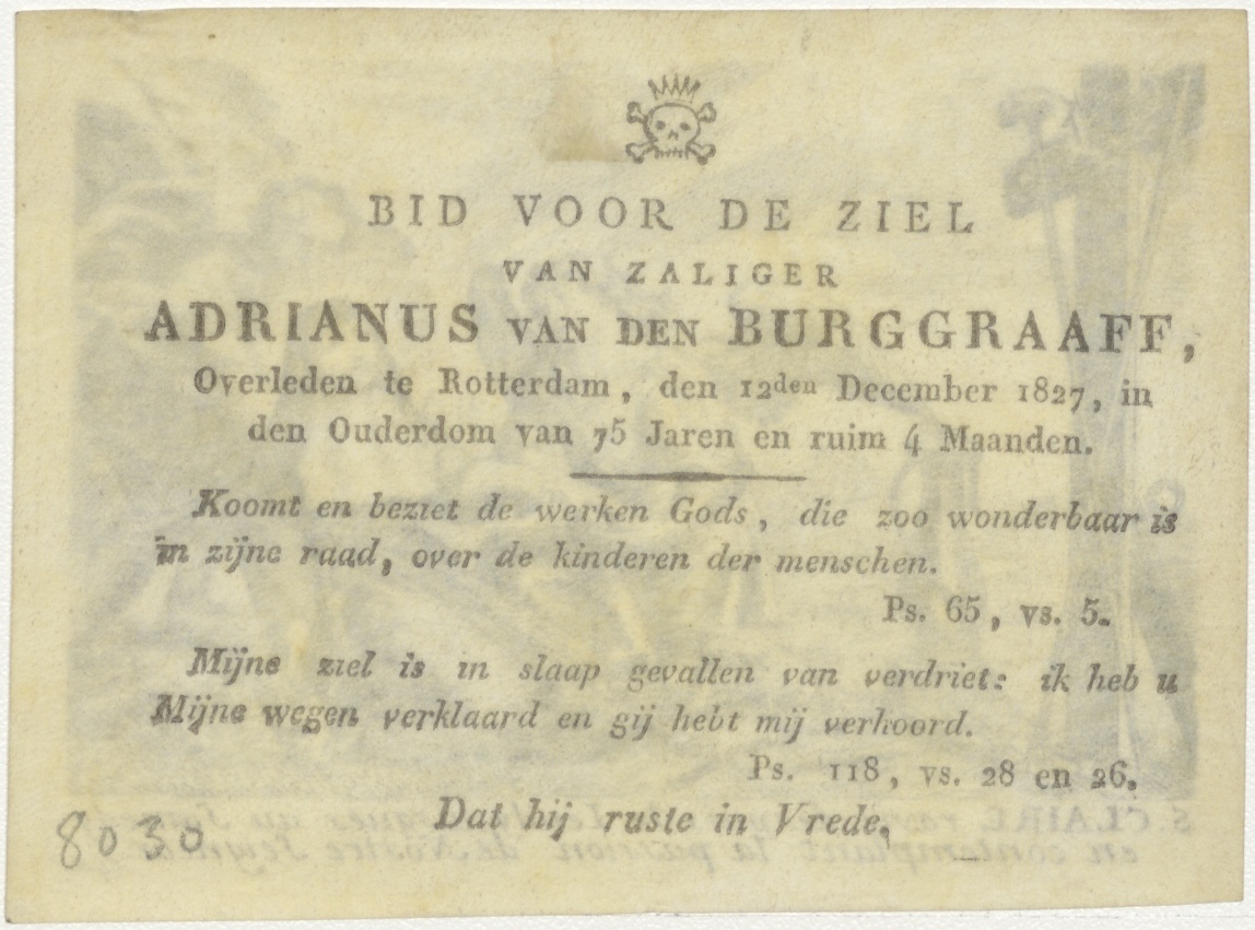 H. Claire, kz. Bid voor ziel Van den Burggraaff (+1827) Rotterdam