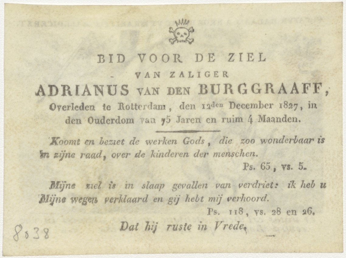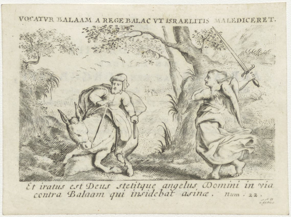Baleam op de ezel met de engel (Num. 22), kz. Bid voor ziel Van den Burggraaff (+1827) Rotterdam