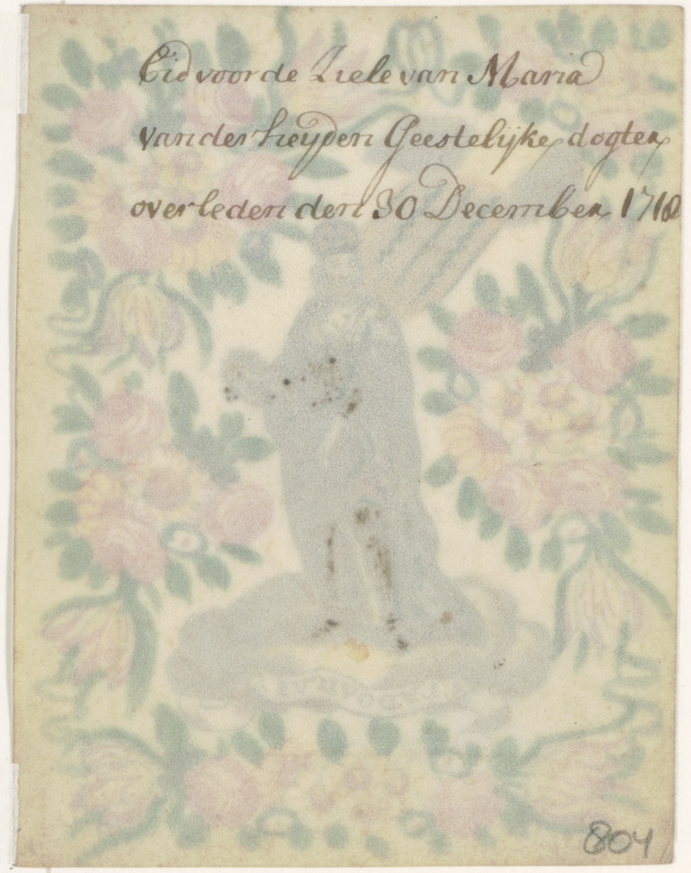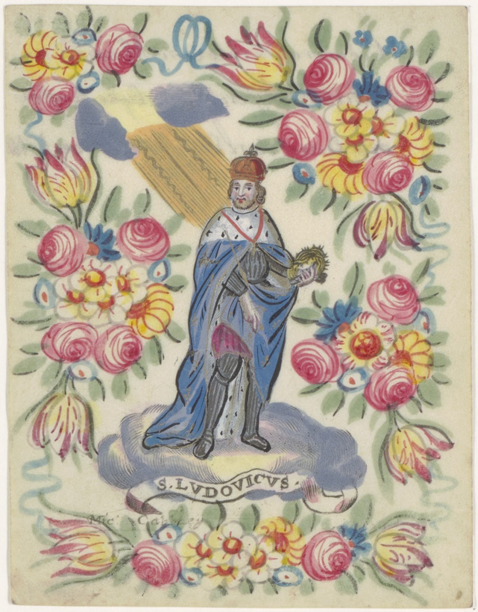 H. Ludovicus, ingekleurd, kz. Religieus;Bid voor ziel Maria van der Heyden (+1718);geestelijke dogter;