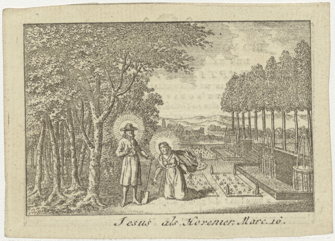 Christus als hovenier met Maria Magdalena (Marc. 10), kz. Bid voor ziel Heyermans (+1827) Oostvoorne