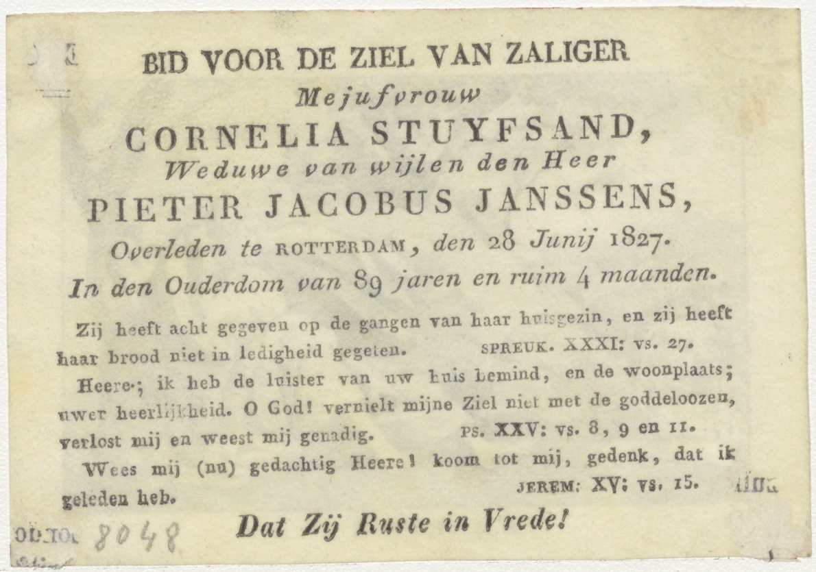 H. Marcus, kz. Bid voor ziel Stuyfsard-Janssens (+1827) Rotterdam