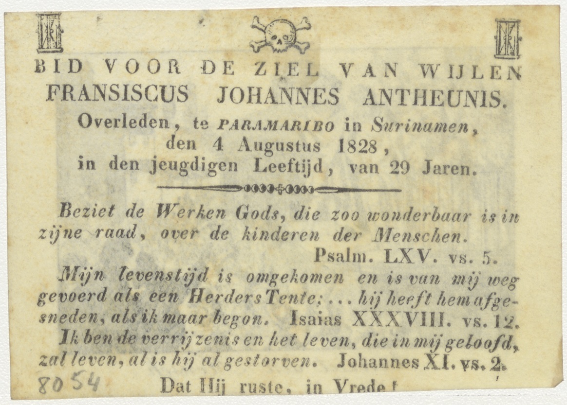 Christus Ecce Homo, kz. Bid voor ziel Antheunis (+1828) Paramaribo
