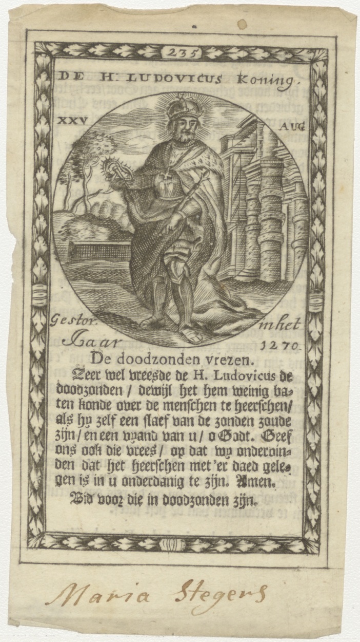 H. Ludovicus (H. Lodewijk IX van Frankrijk), koning, naamfeest (25 augustus), gebed, kz. Stegers;gebed;