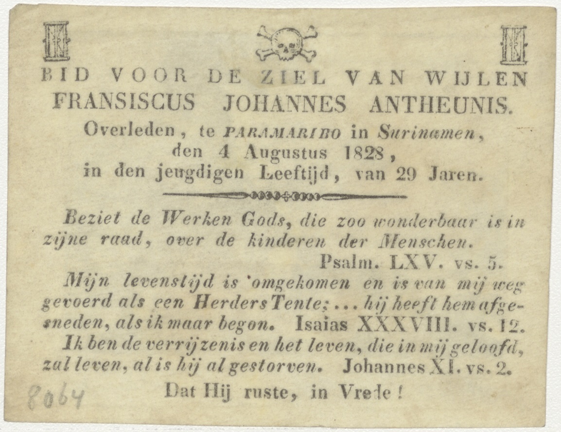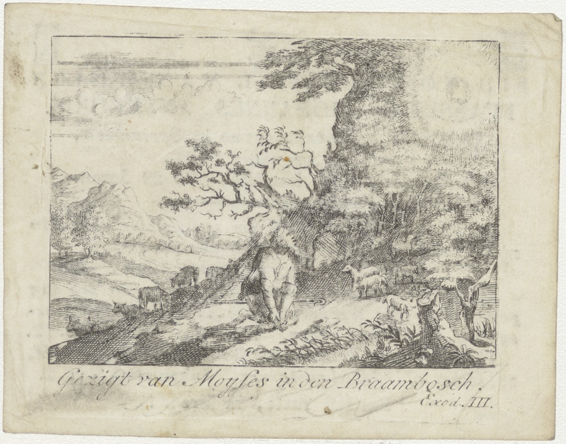 Gezigt van Mozes in den braambosch, kz. Bid voor ziel Antheunis (+1828) Paramaribo (Ex. 3)