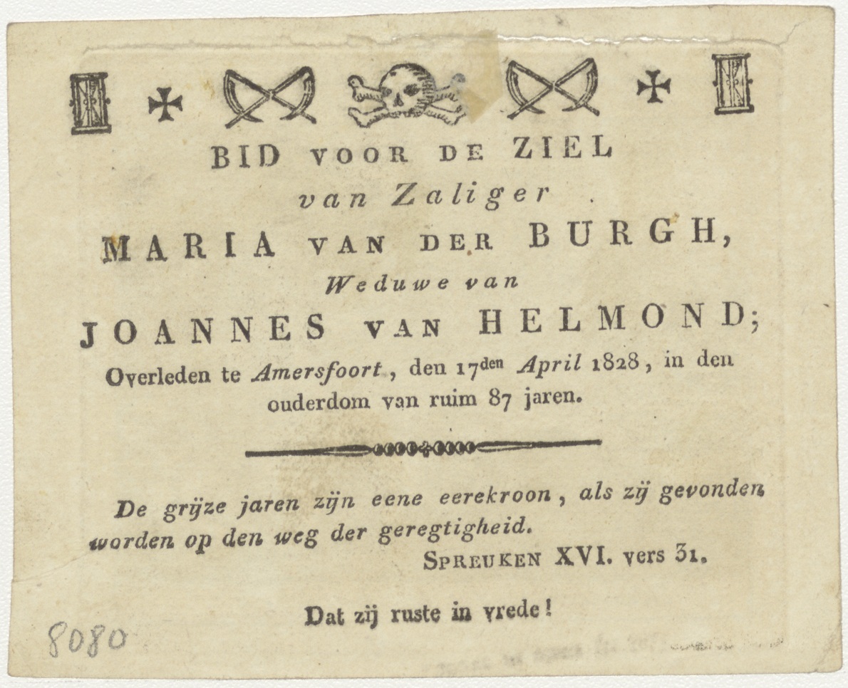 Kindermoord te Bethlehem, kz. Bid voor ziel van der Burgh-van Helmond (+1828) Amersfoort