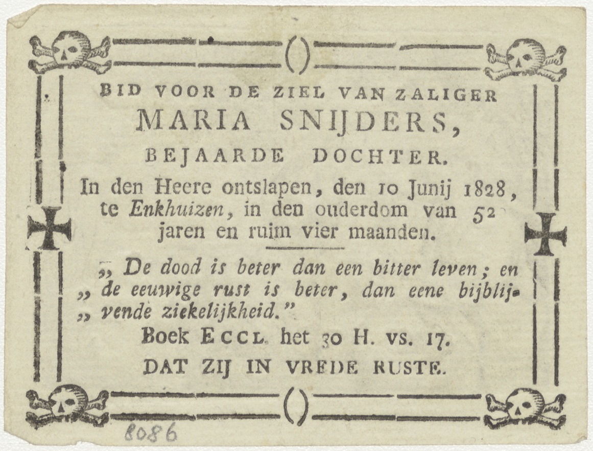 H. Familie, kz. Religieus; bid voor ziel Maria Snijders (+1828) bejaarde dochter