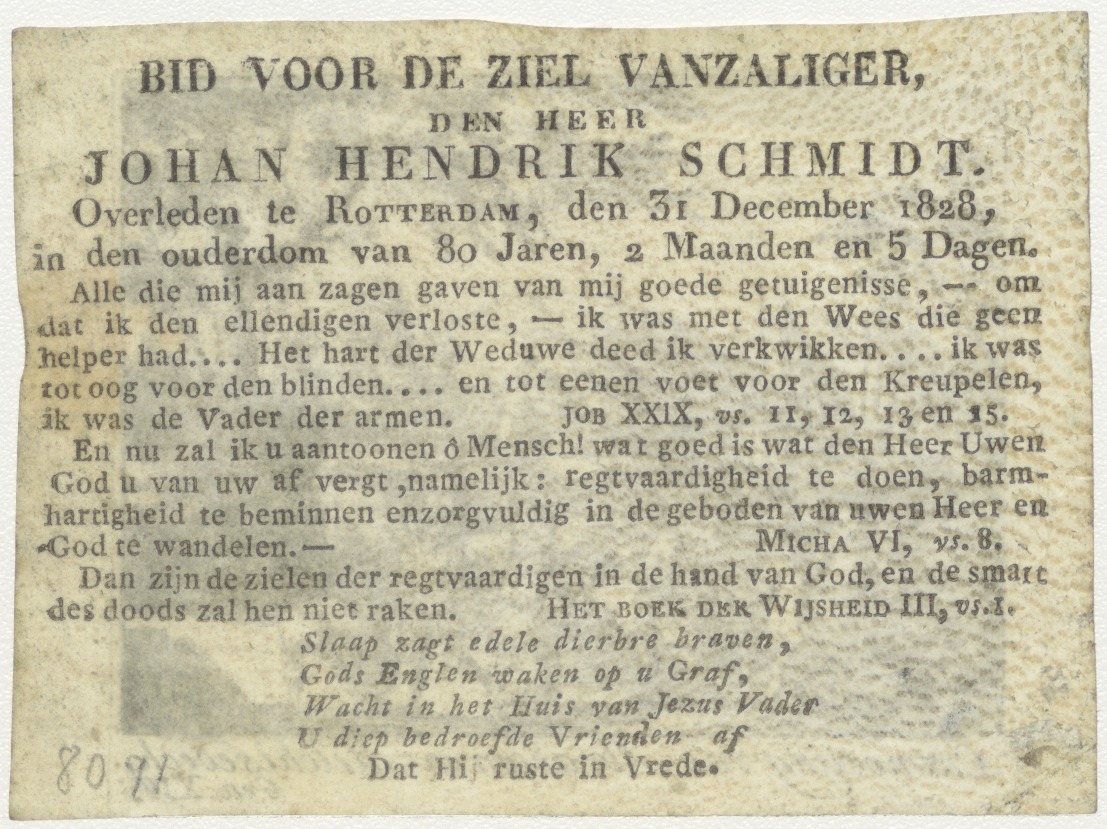 Ontmoeting van Abraham met Melchisedech (Gen. 14), kz. Bid voor ziel Schmidt (+1828) Rotterdam