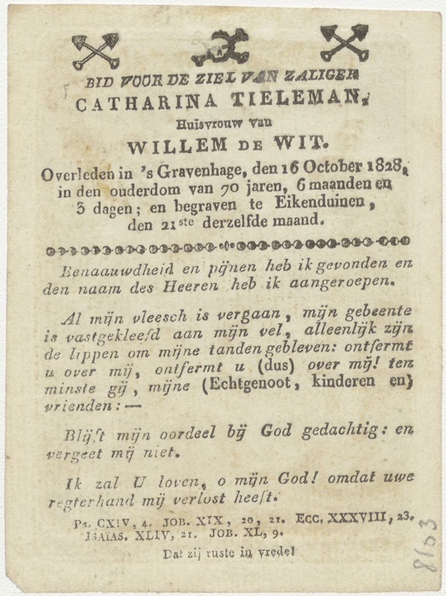 H. Franciscus Xaverius, kz. Bid voor ziel Wilhelmus de Wit-Tieleman (+1828) 's-Gravenhage