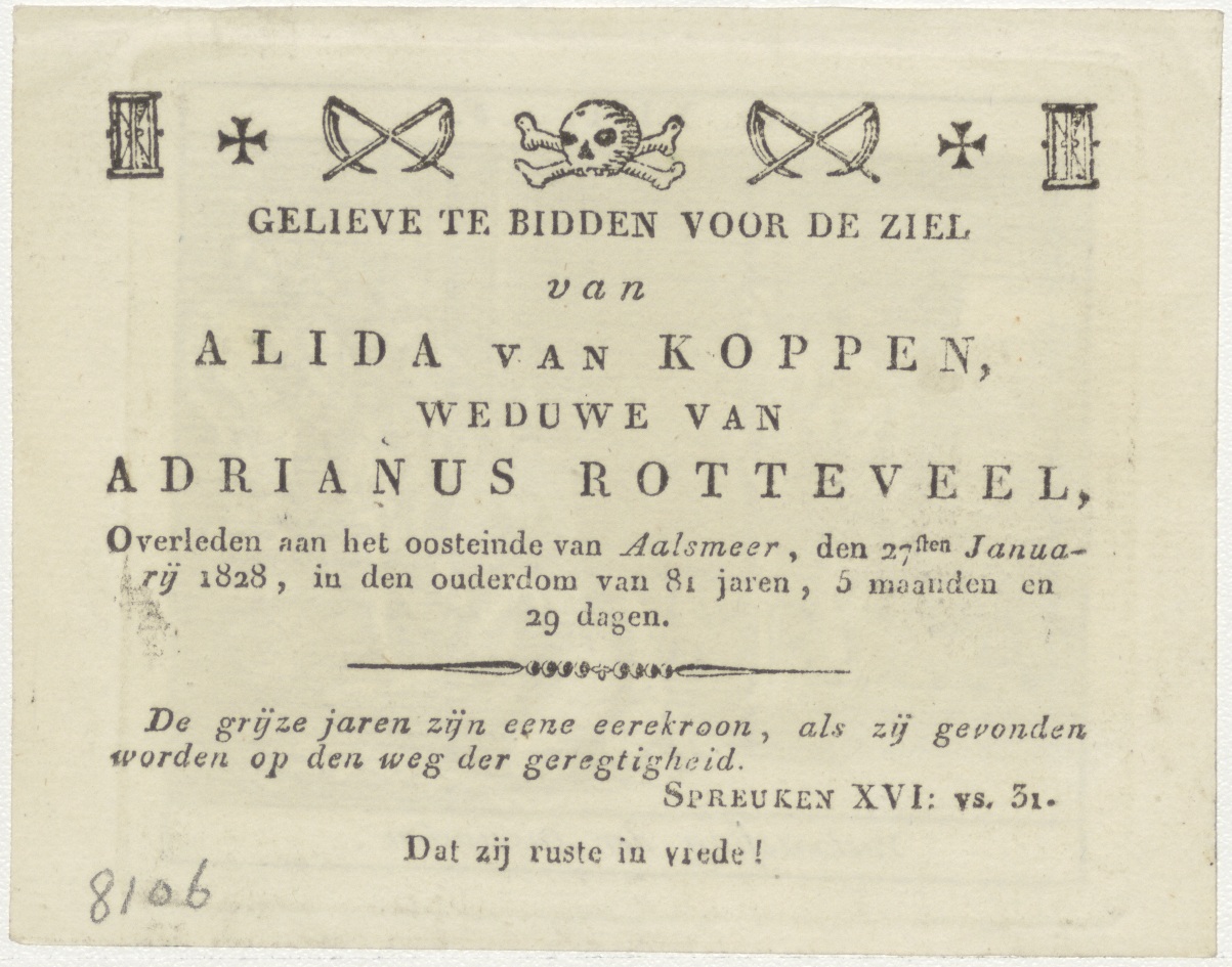 Christus wast de voeten van zijn apostelen, kz. Bid voor ziel Koppen-Rotteveel (+1828) Aalsmeer