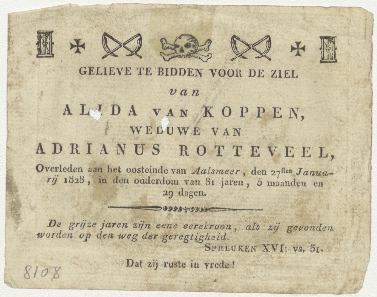 Hoofd van Johannes, kz. Bid voor ziel Koppen-Rotteveel (+1828) Aalsmeer