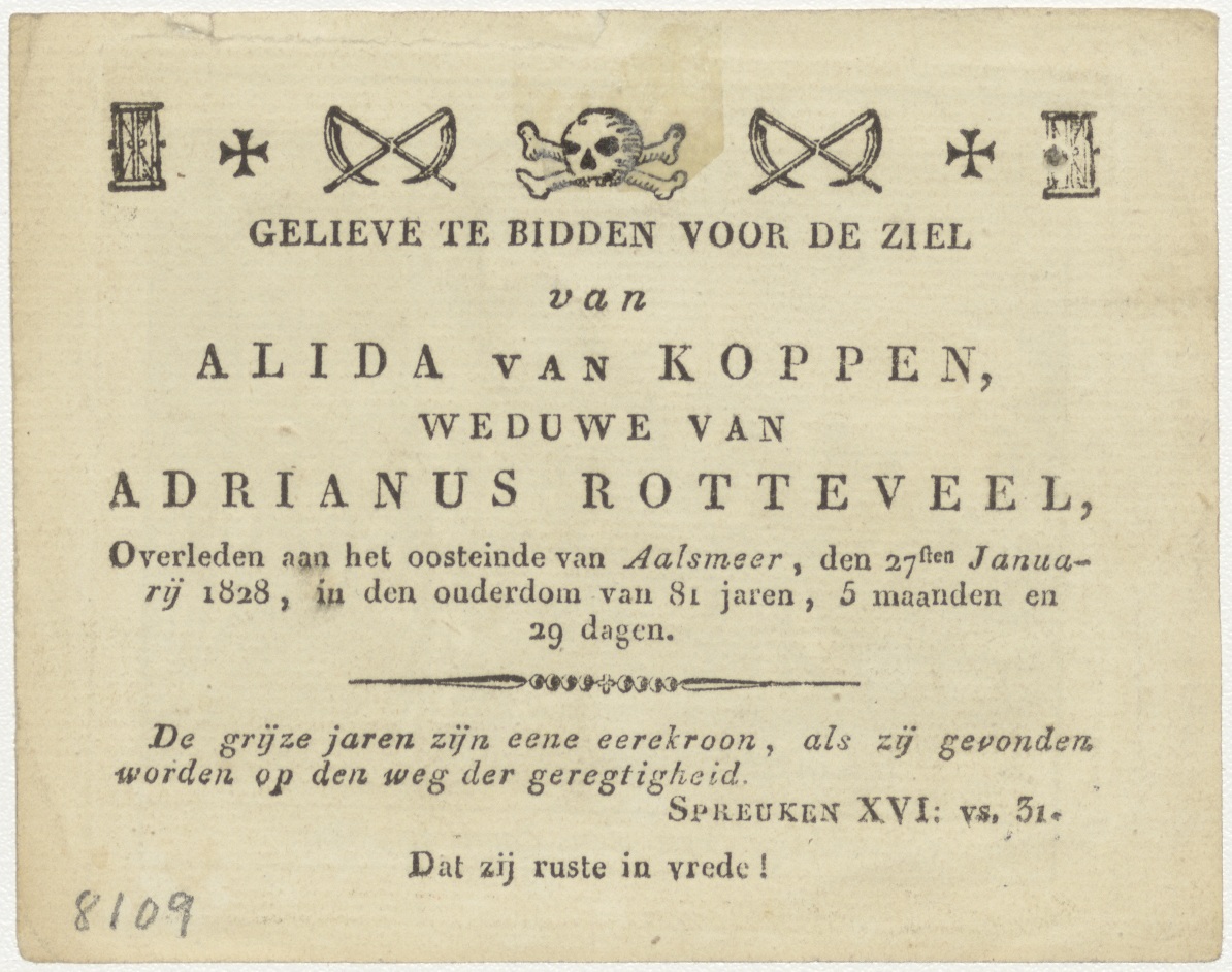Wonder van Christus: opwekking van den zoon te Naïn, kz. Bid voor ziel Koppen-Rotteveel (+1828) Aalsmeer