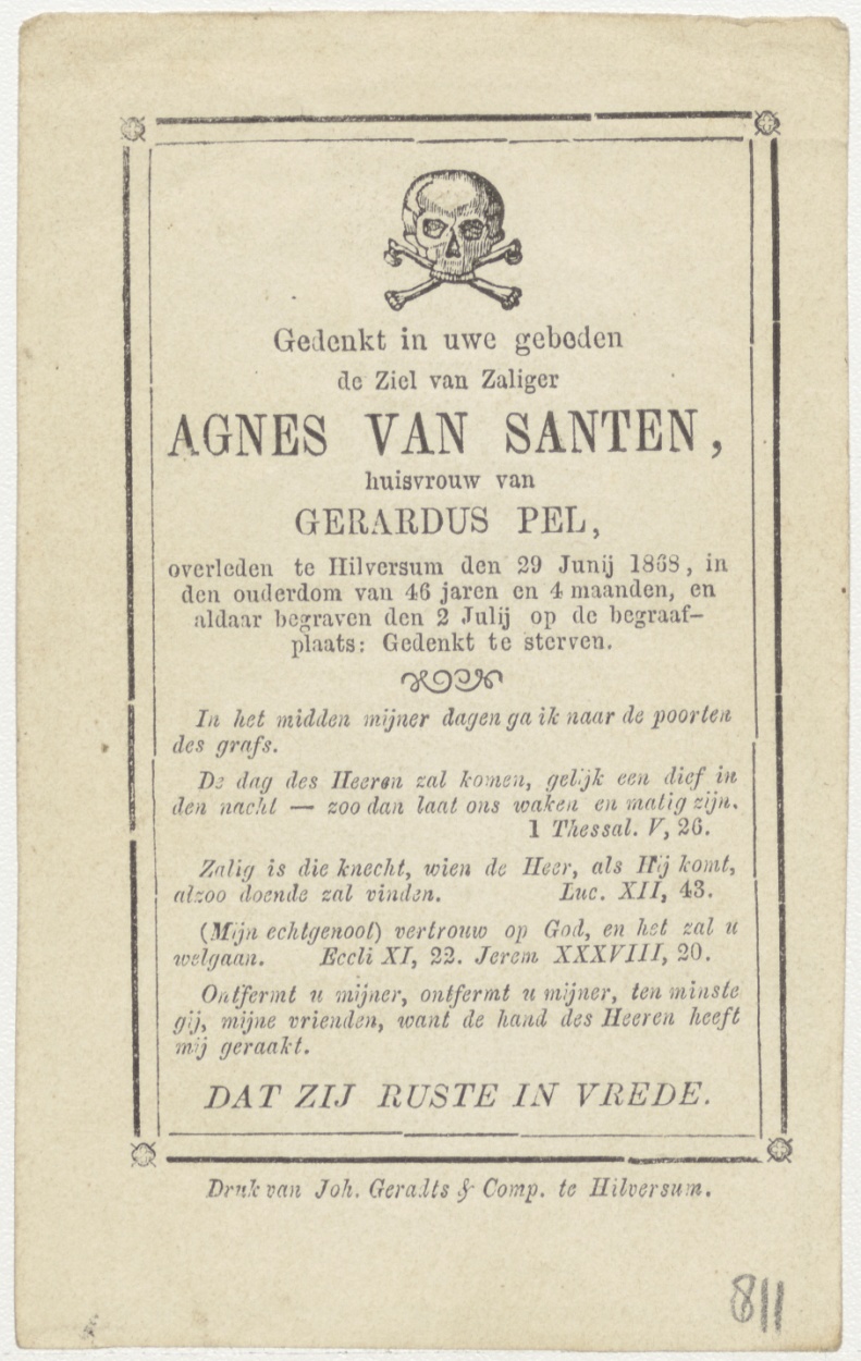 H. Ludovicus, kz. Bid voor ziel Pel-Van Santen (+1868);Hilversum;
