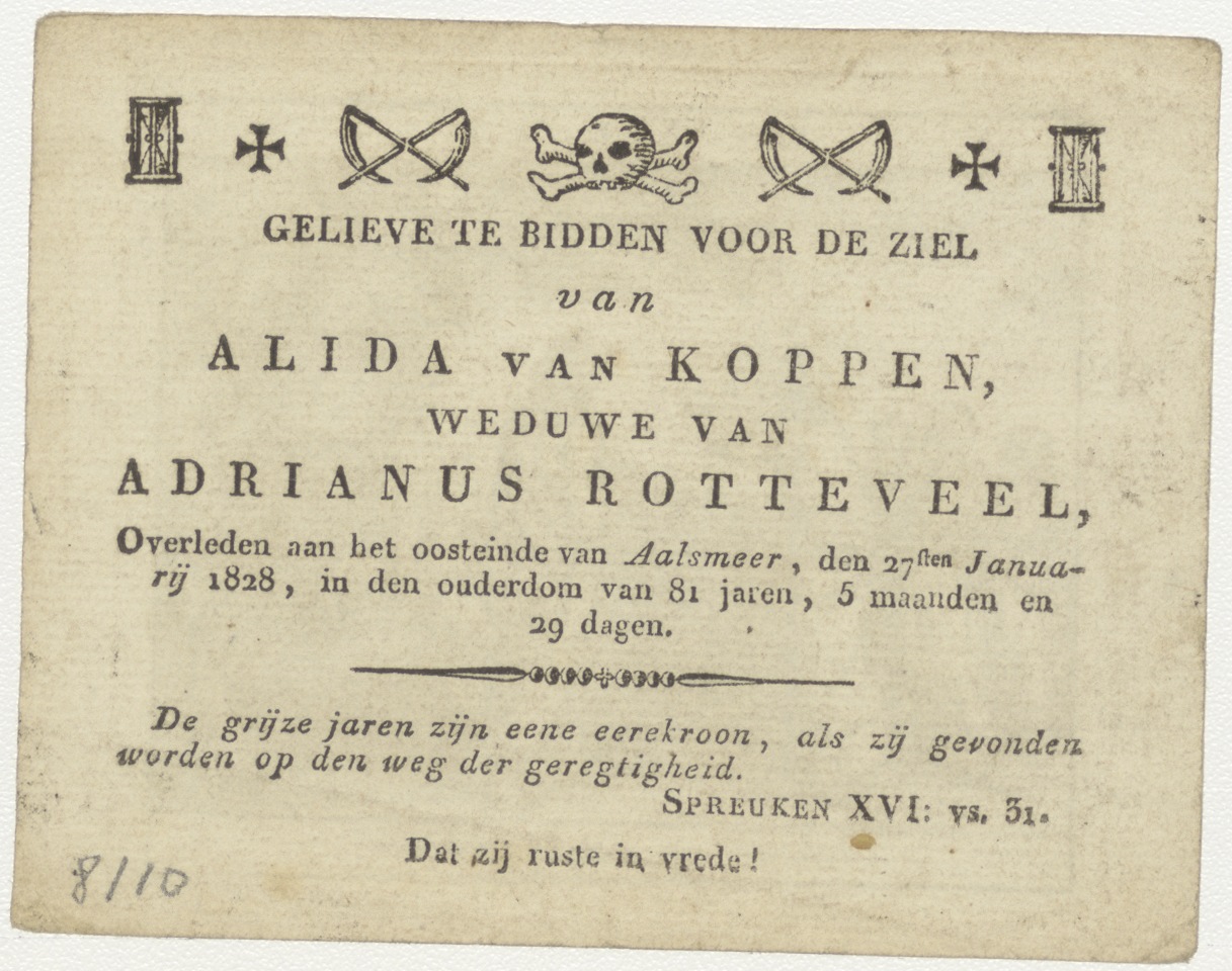 Christus wijst naar Zacheus in de vijgeboom, kz. Bid voor ziel Koppen-Rotteveel (+1828) Aalsmeer