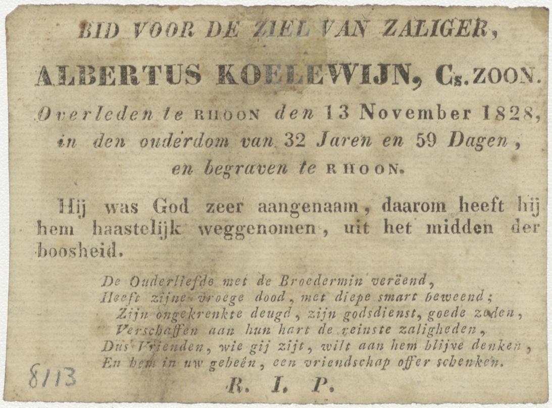 H. Antonius van Padua, kz. Bid voor ziel Koelewijn, cz zoon (+1828) Rhoon