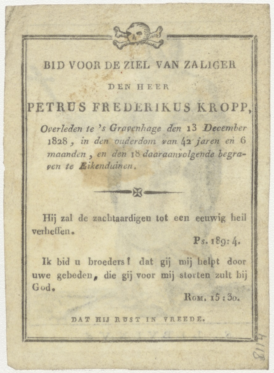 H. Lebuinus, kz. Bid voor ziel Kropp (+1828) 's-Gravenhage