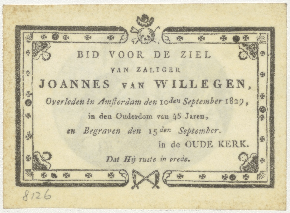 H. Familie, kz. Bid voor ziel Van Willegen (+1829) Amsterdam