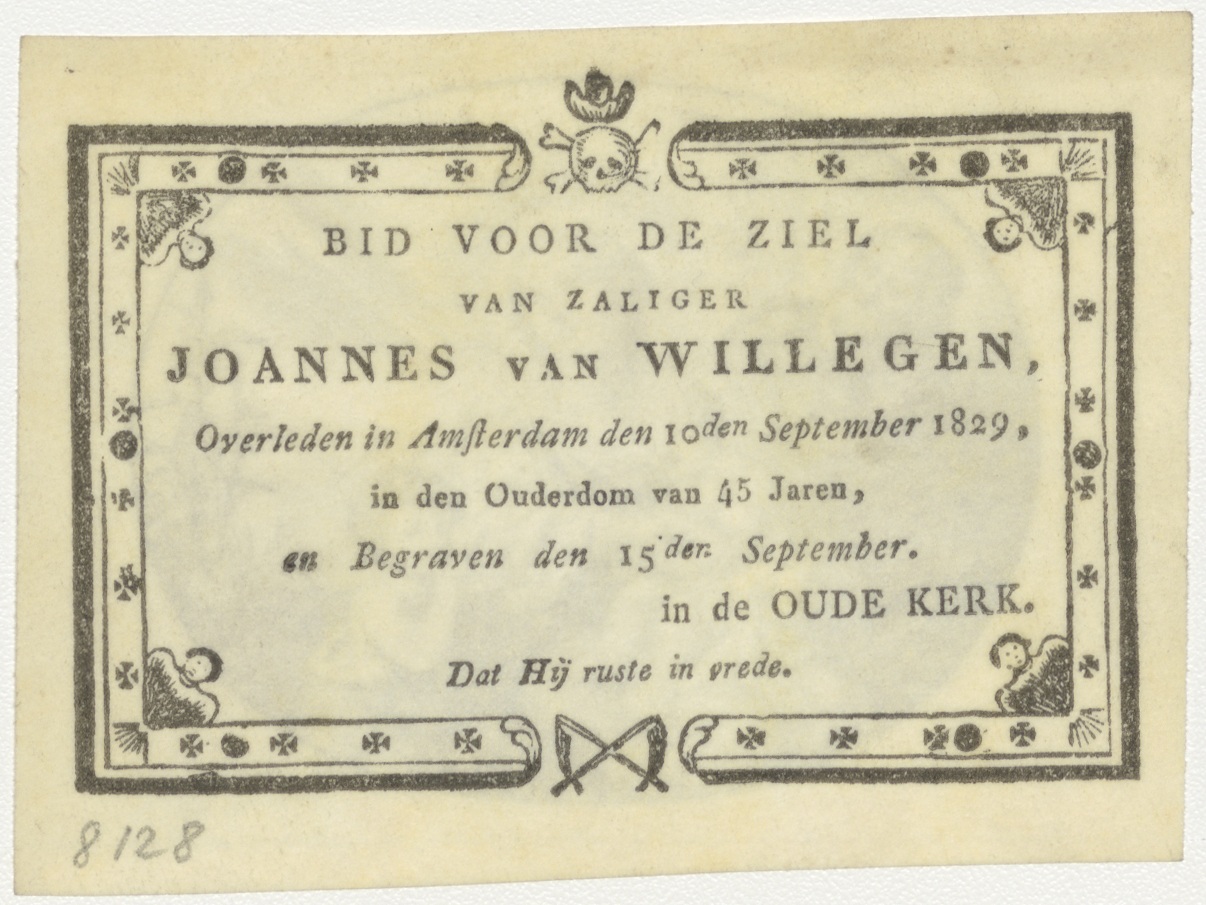 H. Familie, kz. Bid voor ziel Van Willegen (+1829) Amsterdam