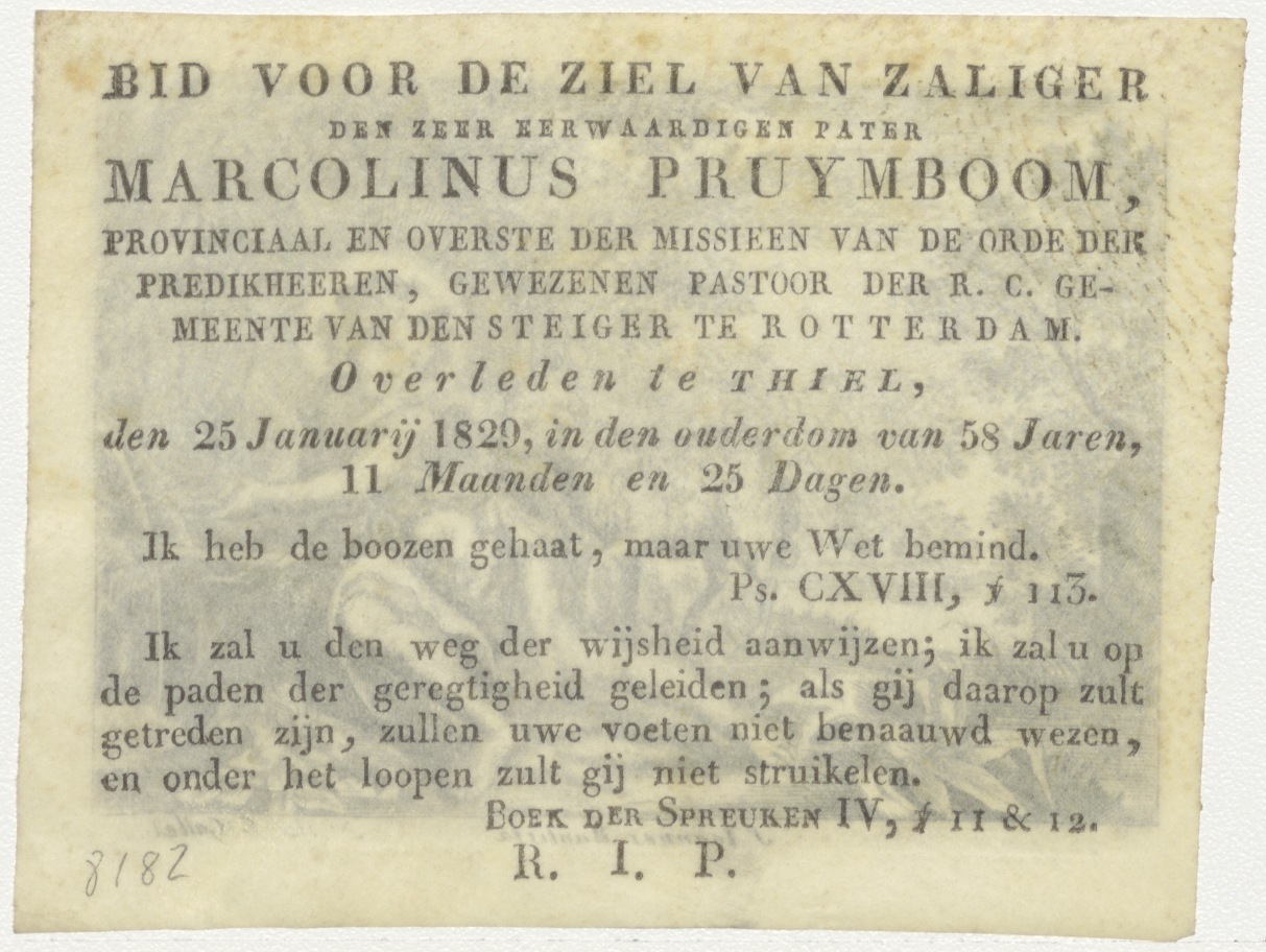 H. Johannes de Doper, kz. Religieus; bid voor ziel Marcolinus Pruymboom (+1829) provinciaal predikheren De Steyger Rotterdam