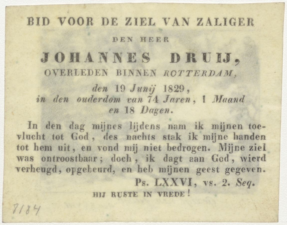 Gezigt van Jacob (Gen. 28), kz. Bid voor ziel Druy (+1829) Rotterdam